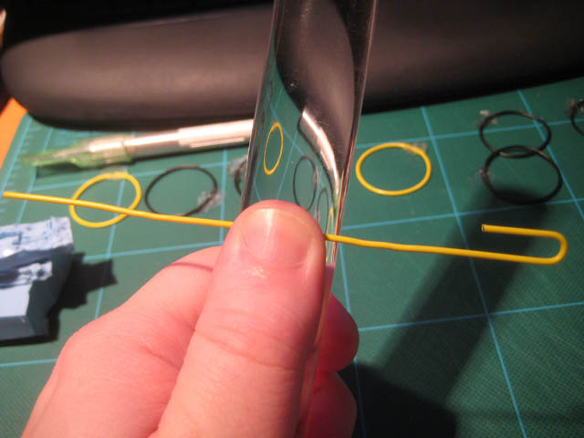 Check out the pic to the right! Those various colored hoops are made out of ordinary paper clips that I picked up at one of the "office" box stores for around $5-6 bucks. The pack I purchased contained 150 Jumbo(which are about 2in.) and 300 #2(which are 1in.) all coated in a vinyl sheath in the various colors you see. I made these using a few simple tools and they work great for marking miniatures during a game for various effects and conditions or to differentiate the same sculpture of a miniature when using multiples. They're also easy to use, and unlike colored magnets don't "raise up" your miniature if your suffering from many effects. So you're never standing 3 in. above the combat on a "pedestal".